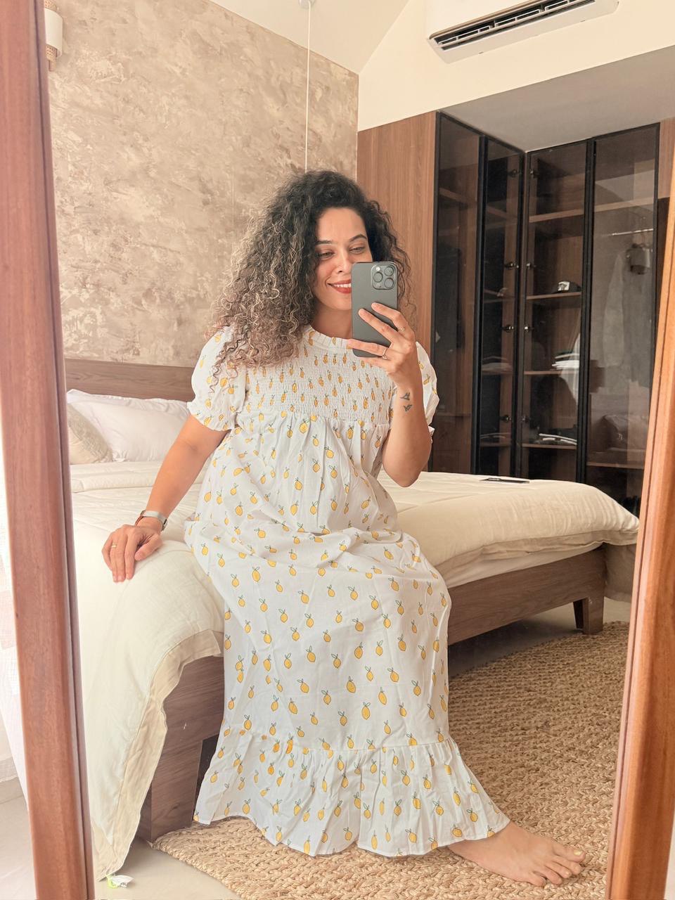 Elara Nightgown combines luxurious fabric with everyday comfort, making it the ideal choice for relaxed home wear. Crafted with soft, premium-quality materials, this gown lets you unwind in style while enjoying exceptional comfort. Perfect for lounging at home, it delivers the sophistication of fine sleepwear without compromising on coziness. Slip into elegance and experience the perfect balance of luxury and practicality.